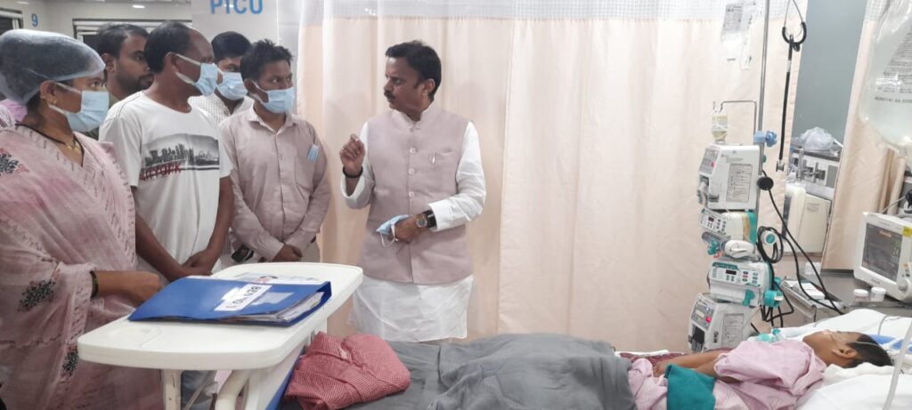 उप मुख्यमंत्री श्री शुक्ल ने बच्चों के परिजनों और अभिभावकों से मुलाकात कर उन्हें ढांढस बंधाया। उन्होंने कहा कि राज्य सरकार पीड़ित परिवारों के साथ है। बच्चों के बेहतर से बेहतर उपचार के लिए हर संभव सहायता दी जाएगी। इलाज में आया खर्च सरकार वहन करेगी। बच्चों के पूर्णतः स्वस्थ होने तक सतत मॉनिटरिंग के निर्देश दिए। उन्होंने कहा कि मुख्यमंत्री डॉ. मोहन यादव इस पूरे मामले में अत्यंत संवेदनशील है और दोषियों के विरुद्ध सख्त कार्रवाई सुनिश्चित की जा रही है। क्षेत्रीय संचालक स्वास्थ्य सेवाएं जबलपुर डॉ. संजय मिश्रा, मध्यप्रदेश स्वास्थ्य विभाग के अधिकारी, जीएमसी नागपुर, एम्स नागपुर और न्यू हेल्थ सिटी हॉस्पिटल के अधीक्षक, शिशु रोग चिकित्सक, विशेषज्ञ और चिकित्सक दल उपस्थित रहे।