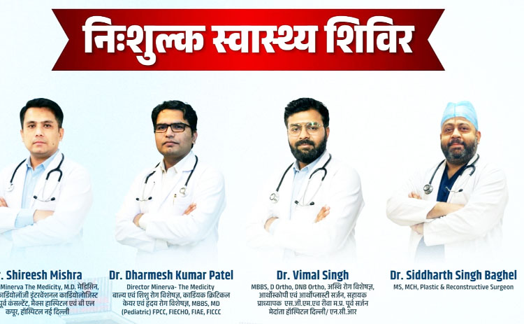 रीवा। मिनर्वा द मेडिसिटी हॉस्पिटल रीवा ने मानवता सेवा में कदम बढ़ाते हुए शहर के साथ जिले ग्रामीण क्षेत्रों में लोगों को स्वास्थ्य सुविधा उपलब्ध कराने नि:शुल्क स्वास्थ्य शिविर का आयोजन कर कुशल व अनुभवी चिकित्सकों के उपस्थिति में सभी तरह की रोगों की जांच कर उन्हें उनके रोग अनुसार नि:शुल्क दवा का वितरण किए जाने का उत्कृष्ट सेवा शुरू किया है। इसी परिपेक्ष्य में 12 जनवरी को जिले के त्योंथर के शासकीय स्वामी विवेकानंद महाविद्यालय में सुबह 10 बजे से दोपहर 2 बजे तक शिविर का आयोजन किया है। उक्त शिविर में मिनर्वा हॉस्पिटल के डायरेक्टर मेडिसिन व कार्डियोलॉजिस्ट विशेषज्ञ डॉक्टर शिरीष मिश्रा, मिनर्वा हॉस्पिटल के डायरेक्टर बाल्य एवं शिशु रोग विशेषज्ञ, कार्डियक क्रिटिकल केयर एवं हृदय रोग विशेषज्ञ डॉक्टर धर्मेश कुमार पटेल, अस्थि रोग विशेषज्ञ डॉक्टर विमल सिंह, डॉक्टर सिद्धार्थ सिंह बघेल सहित अन्य विशेषज्ञ चिकित्सीय टीम अपनी सेवाएं देंगे। उक्त जानकारी मिनर्वा हॉस्पिटल के प्रबंधक ने देते हुए बताया कि शिविर में रोग जांच विशेषज्ञ आवश्यक उपकार के साथ उपस्थित रहेंगे। उक्त शिविर के व्यवस्थापकों ने स्थानीय जनों से अधिक से अधिक लोगों से पहुंचकर नि:शुल्क स्वास्थ्य शिविर का लाभ लेने की अपील की है।