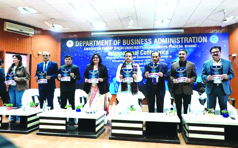 प्रबंधन और वाणिज्य में नवीन अनुसंधान और सतत विकास विषय पर अन्र्तराष्ट्रीय कांफ्रेंस का शुभारंभ करते हुए उप मुख्यमंत्री श्री राजेन्द्र शुक्ल ने कहा कि अनुसंधान आधारित विकास लाभप्रद है। हमें अपनी सनातन संस्कृति और मूल्यों से जुड़े रहकर विकास करना होगा। अवधेश प्रताप सिंह विश्वविद्यालय के एमबीए विभाग द्वारा पंण् शम्भूनाथ शुक्ल सभागार में आयोजित अन्र्तराष्ट्रीय कांफ्रेंस में उप मुख्यमंत्री ने कहा कि आर्थिक तरक्की के लिये भारतीय मूल्यों को दाव पर न लगायें। युवाओं का दायित्व है कि वह नवाचार करेंए अनुसंधान करें तथा सतत विकास की ओर ले जाने के लिये आगे आयें। श्री शुक्ल ने कहा कि हमें अपनी भारतीय ज्ञान परंपरा से हटकर कार्य नहीं करना चाहिए यदि हम रास्ते से भटके तो इसके गंभीर परिणाम होंगे। प्राकृतिक खेती अनुसंधान से ही निकला ज्ञान है जिसके माध्यम से हम अपने और परिवार के साथ ही धरती को स्वस्थ रख पायेंगे। उन्होंने एमबीए विभाग द्वारा आयोजित अन्र्तराष्ट्रीय कांफ्रेंस के आयोजन की प्रशंसा करते हुए कहा कि आज के परिवेश में यह सार्थक सिद्ध होगी और इसके मंथन से निकला ज्ञान छात्रों के साथ ही समाज के लिये लाभदायक होगा। उन्होंने कहा कि हमारा देश विश्वगुरू बनने की ओर अग्रसर है। हम 2047 तक विश्वगुरू तो बनेंगे ही साथ ही आने वाले समय में विश्व की सबसे बड़ी अर्थव्यवस्था भी बनेंगे। उन्होंने विद्यार्थियों के उज्जवल भविष्य की कामना की तथा कहा कि वह नौकरी देने वाले बनें नौकरी करने वाले नहीं।